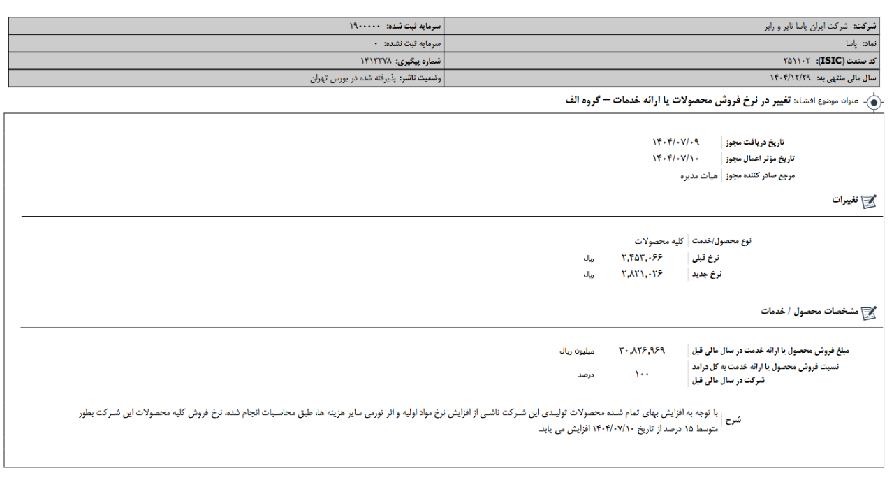 افشای اطلاعات بااهمیت، تغییر در نرخ فروش محصولات یا ارائه ی خدمات-گروه الف