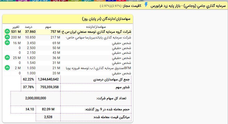 این شرکت طی بازه مذکور مبلغی بالغ بر ۲,۲۳۳,۱۶۳ میلیون ریال سهام شرکت‌های بورسی را خریداری و بالغ بر ۱,۱۹۰,۴۲۱ میلیون ریال سهام شرکت‌های بورسی را فروخته است.