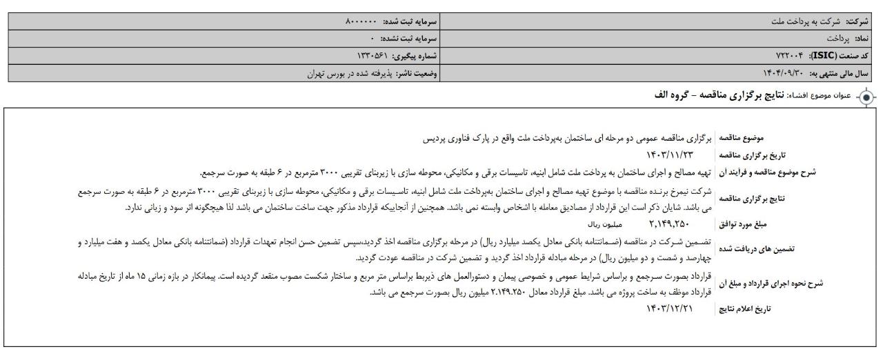 افشای اطلاعات بااهمیت،نتایج برگزاری مناقصه،گروه الف
