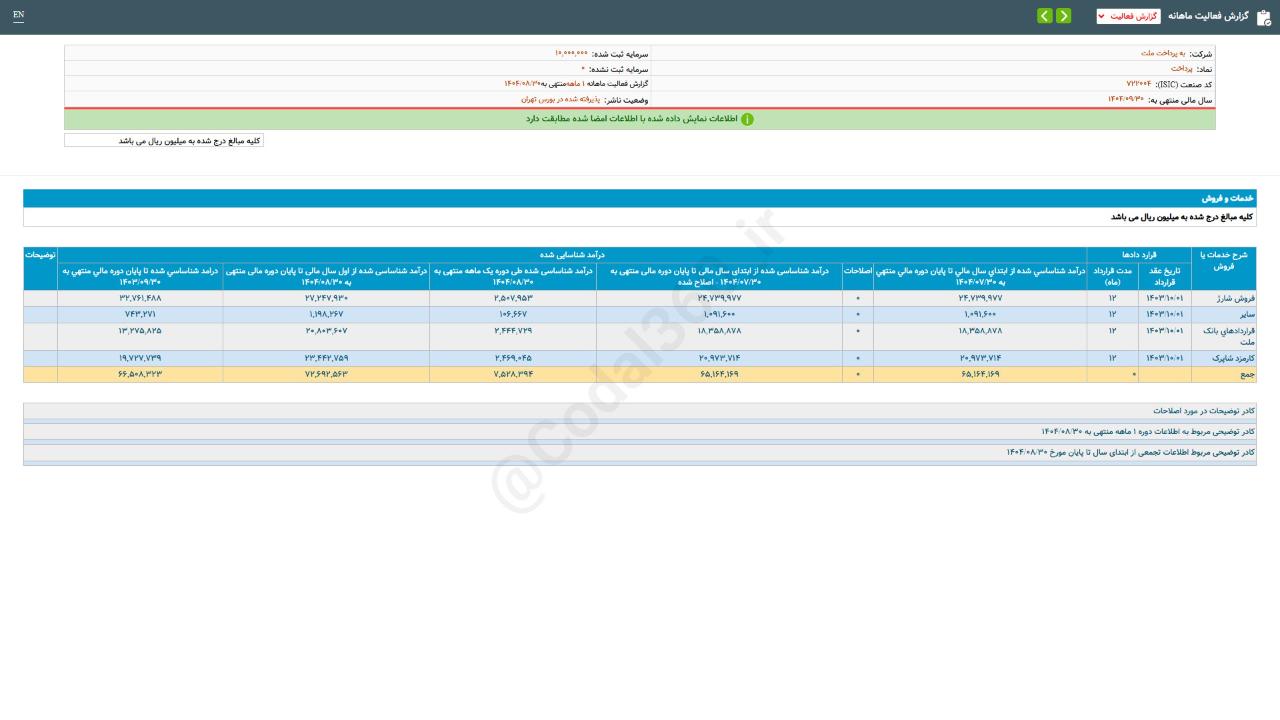#گزارش_فعالیت_ماهانه #دوره_1_ماهه منتهی به 14040830 شرکت #به_پرداخت_ملت