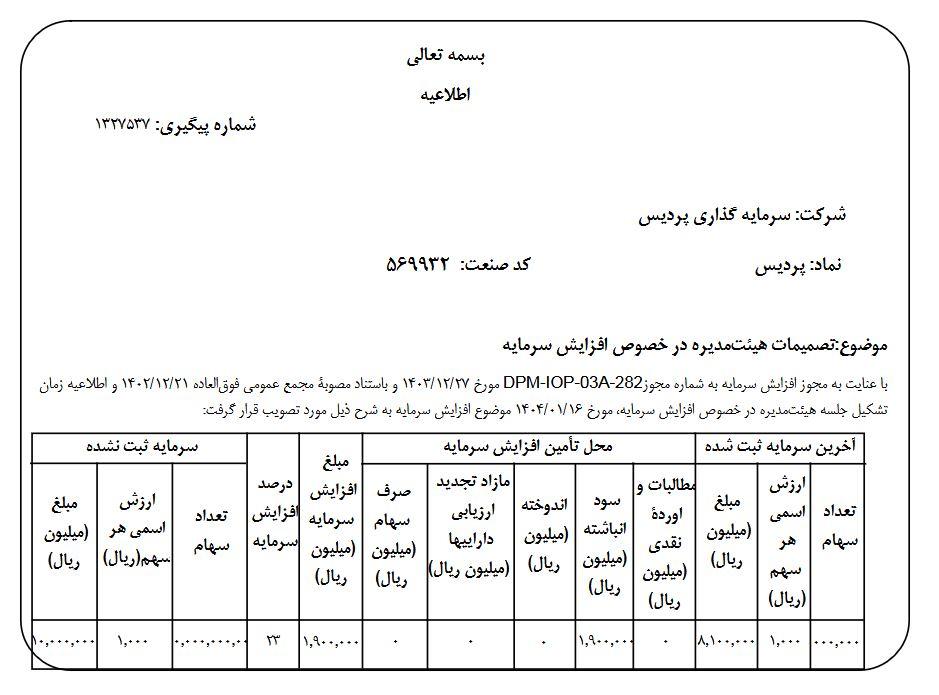 تصمیمات هیئت مدیره در خصوص #افزایش_سرمایه #پردیس