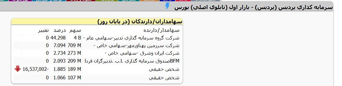 فروشنده #پردیس در معامله بلوکی دیروز 28 تیرماه سهامدار حقیقی بالای یک درصد این شرکت بود که علاوه بر این بلوک بیش از 2.5 میلیون سهم را هم در بازار عادی به فروش رساند.
