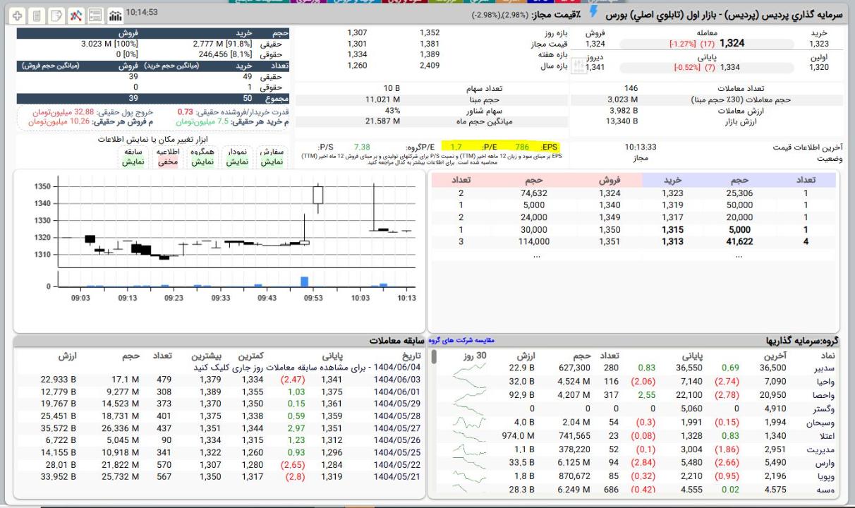 در نماد پردیس امروز 8 تیر 1404 تعداد 14 میلیون سهم به صورت بلوکی معامله گردید