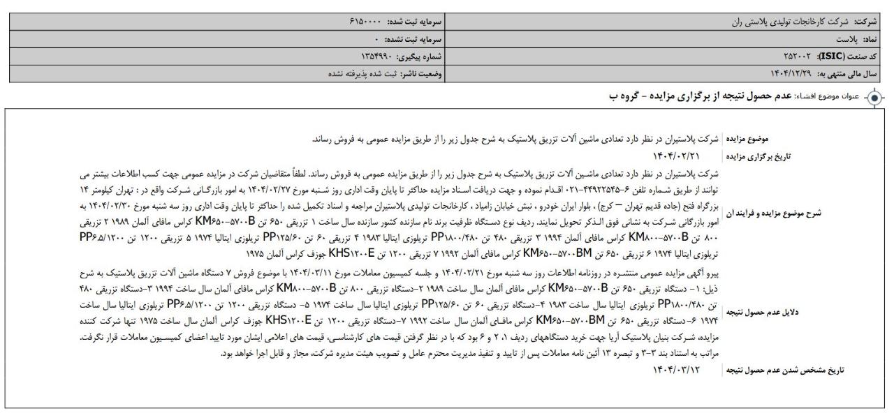 افشای اطلاعات بااهمیت، عدم حصول نتیجه از برگزاری مزایده، گروه ب