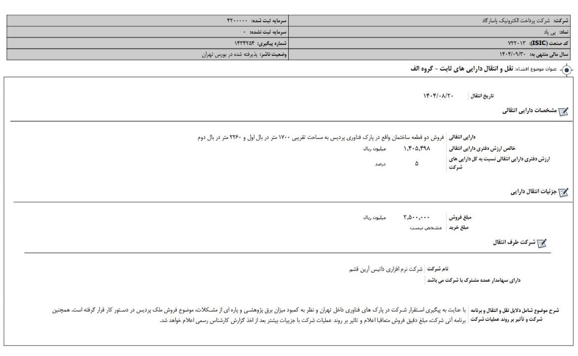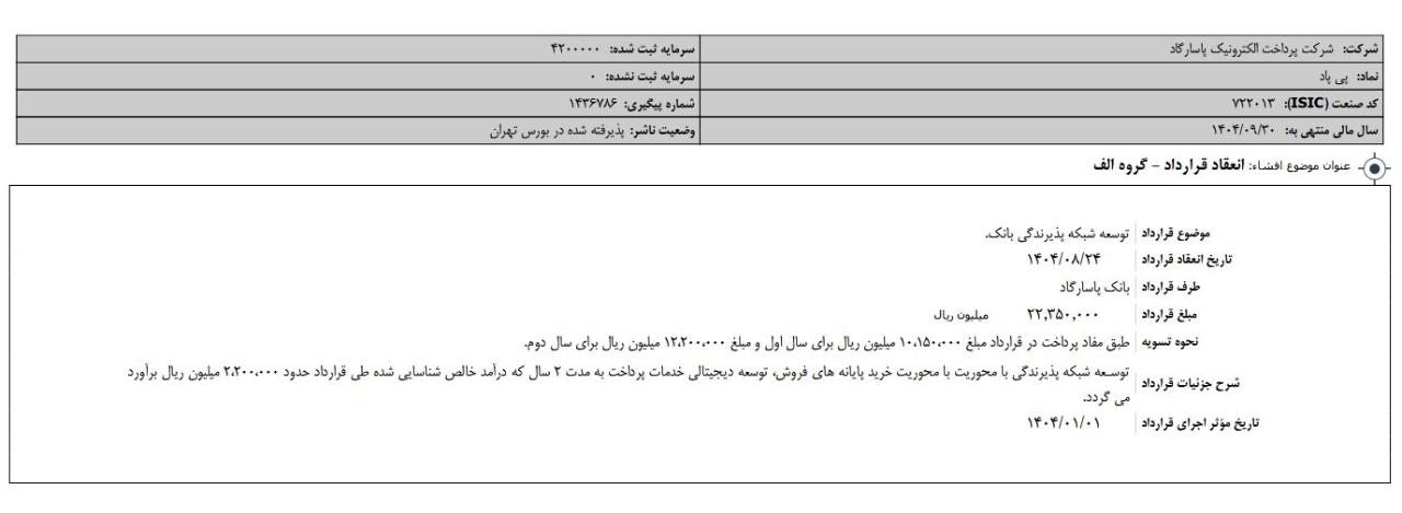 شرح جزئيات قرارداد توسعه شبکه پذیرندگی با محوریت با محوریت خرید پایانه های فروش، توسعه دیجیتالی خدمات پرداخت به مدت 2 سال که درآمد خالص شناسایی شده طی قرارداد حدود 2،200،000 میلیون ریال برآورد می گردد.
