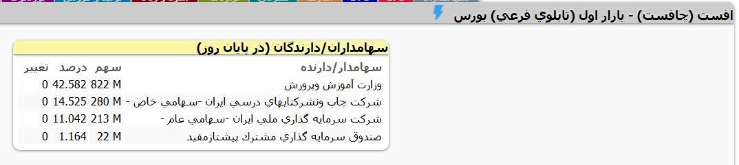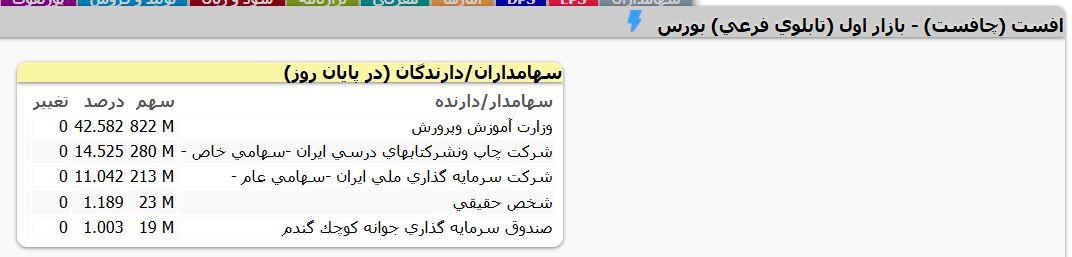 در روز معاملاتی 31 تیر 1404 صندوق سرمايه گذاري جوانه كوچك گندم با فروشی که در نماد #چافست داشت از جمع سهامداران بالای یک درصد افست خارج شد.