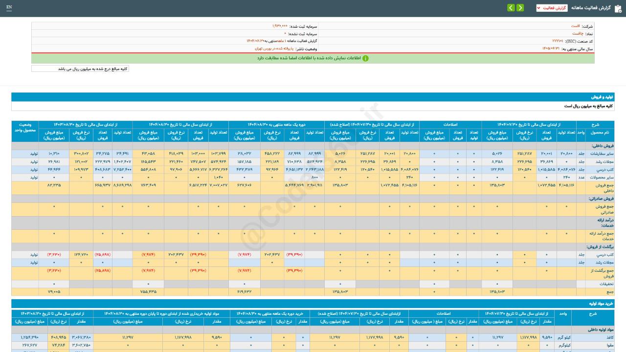 #گزارش_فعالیت_ماهانه #دوره_1_ماهه منتهی به 14040830 شرکت #افست