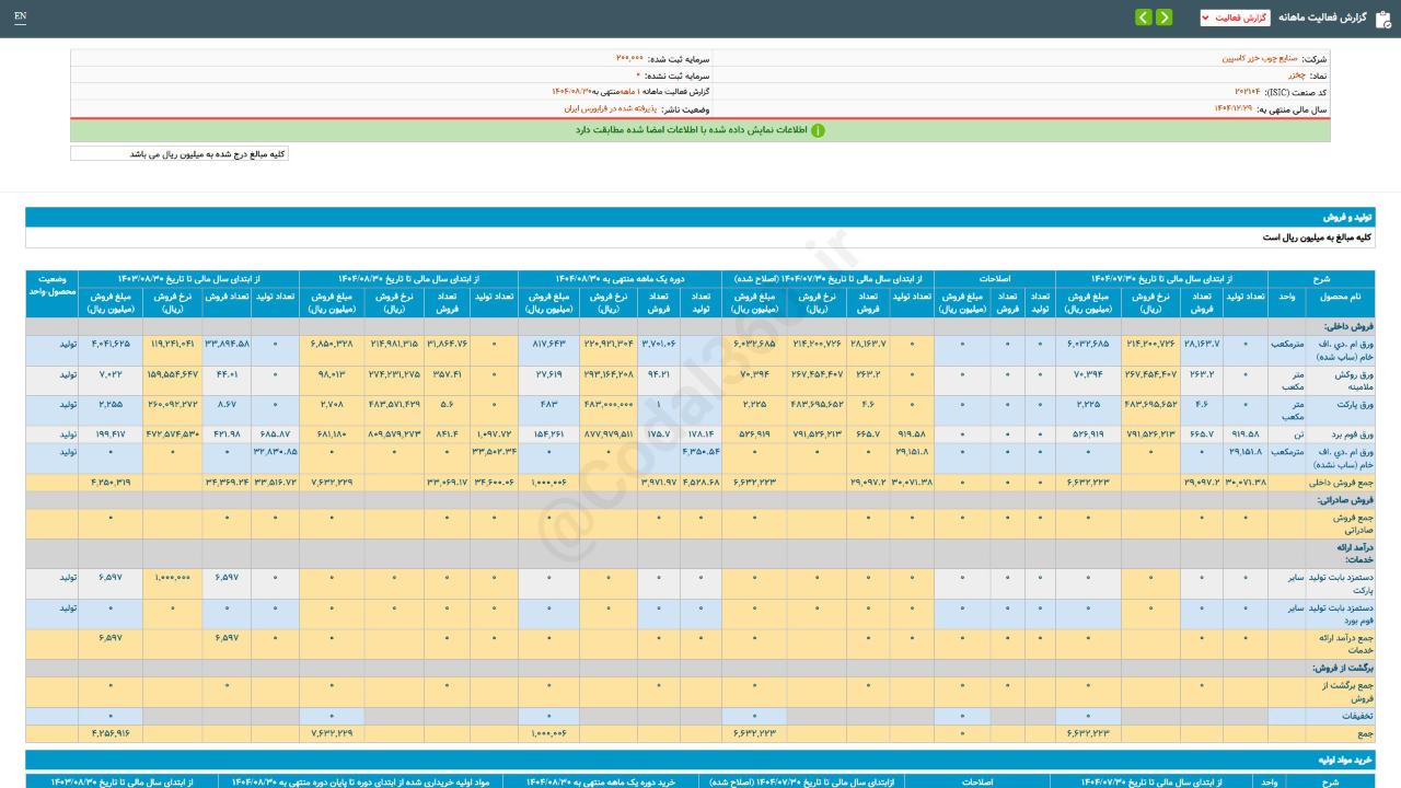 #گزارش_فعالیت_ماهانه #دوره_1_ماهه منتهی به 14040830 شرکت #صنایع_چوب_خزر_کاسپین