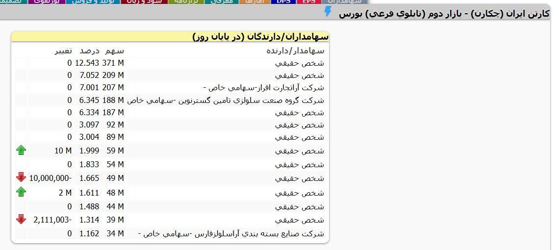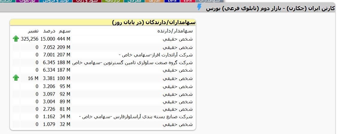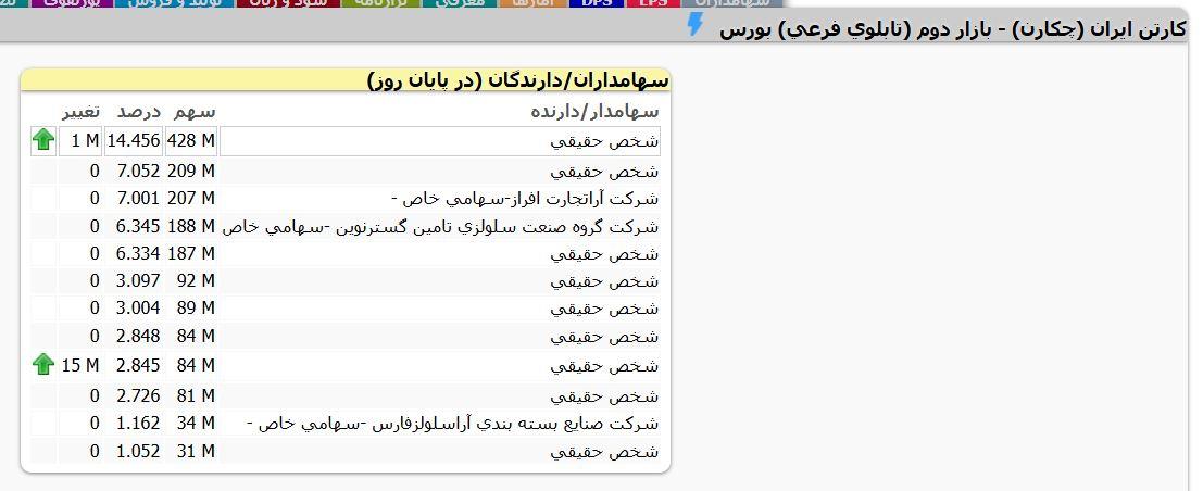 خریدار و فروشنده #چکارن در معامله بلوکی روز اول شهریور ماه دو سهامدار حقیقی بالای یک درصد شرکت بود که سهام را بین خودشان مبادله کردند.