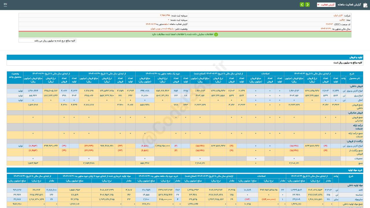 #گزارش_فعالیت_ماهانه #دوره_1_ماهه منتهی به 14040730 شرکت #کارتن_ایران