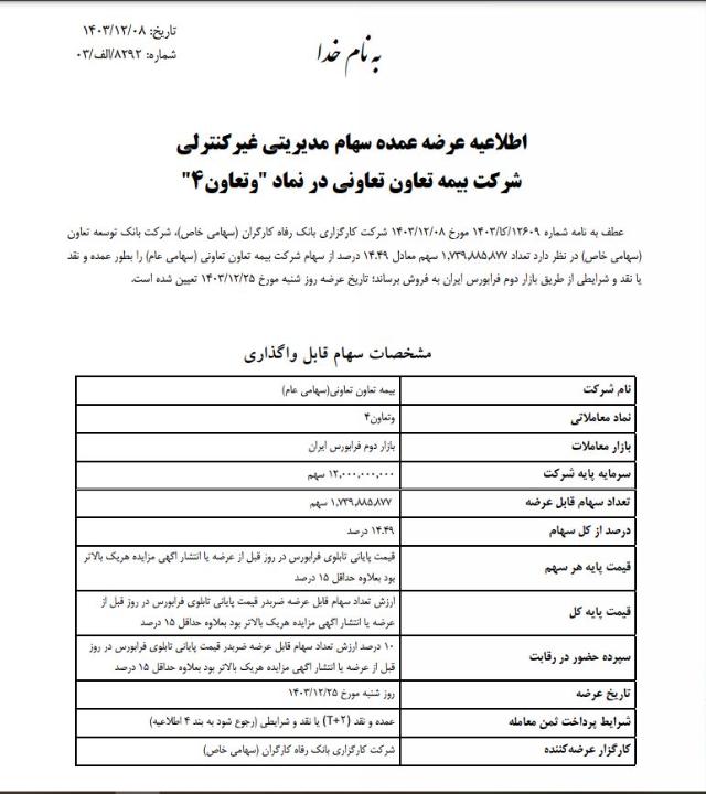 #اطلاعیه_عرضه_عمده #کنترلی #شکبیر #کارگزاری_بانک_رفاه_کارگران #عرضه_عمده #نقد #توسعه_سرمایه_رفاه #مدیریتی #شکبیر4
