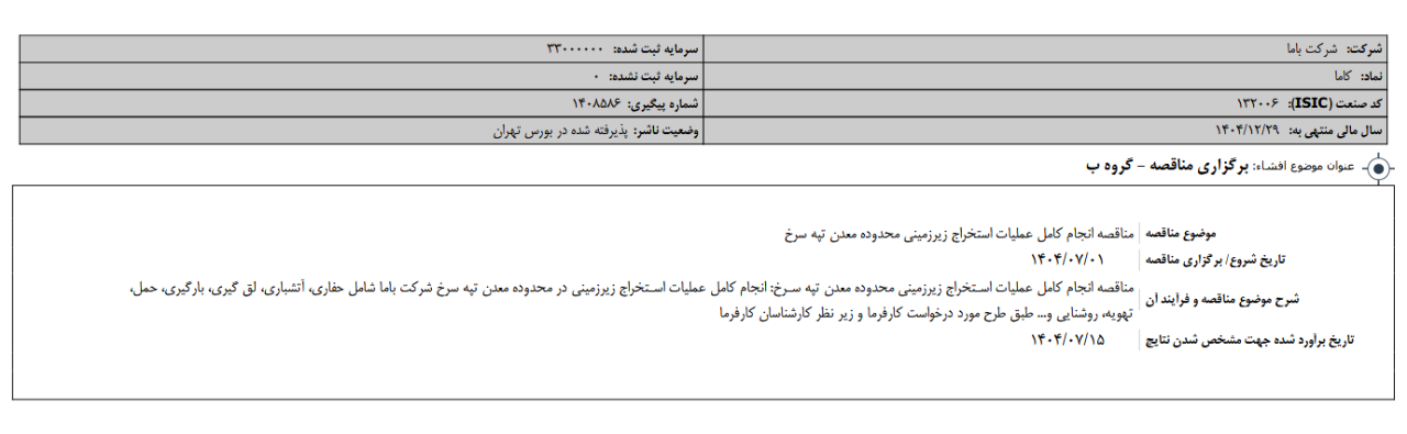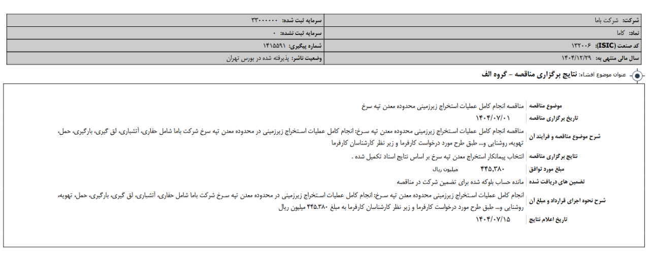 افشای اطلاعات بااهمیت،نتایج برگزاری مناقصه-گروه الف