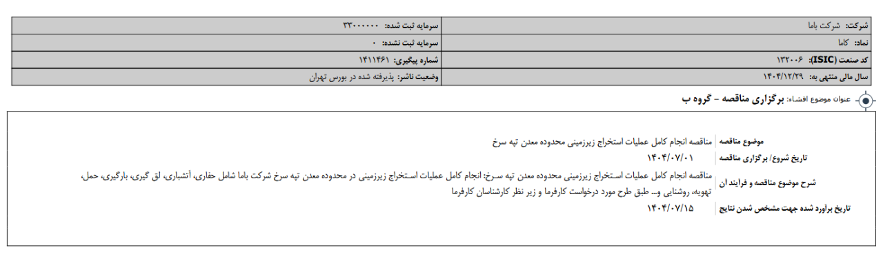 افشای اطلاعات بااهمیت،برگزاری مناقصه-گروه ب
