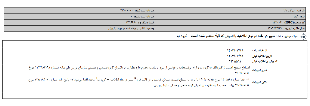 افشای اطلاعات بااهمیت، تغيير در مفاد هر نوع اطلاعيه بااهميتي كه قبلاً منتشر شده است - گروه ب