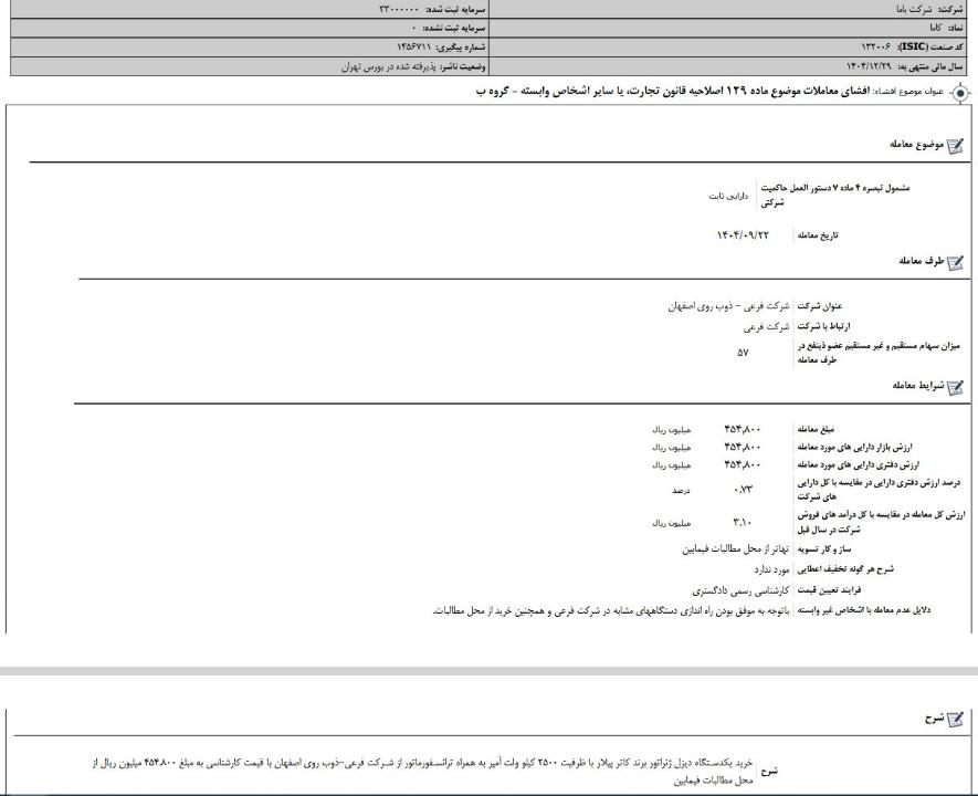 در خصوص صورتهای مالی میاندوره ای مورخ 1404.06.31