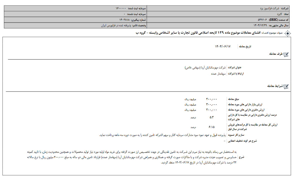 افشای اطلاعات بااهمیت،افشاي معاملات موضوع ماده 129 لایحه اصلاحی قانون تجارت یا ساير اشخاص وابسته - گروه ب