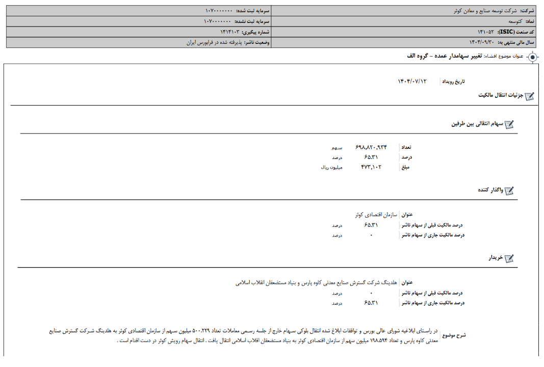 افشای اطلاعات بااهمیت،تغییر سهامدار عمده-گروه الف