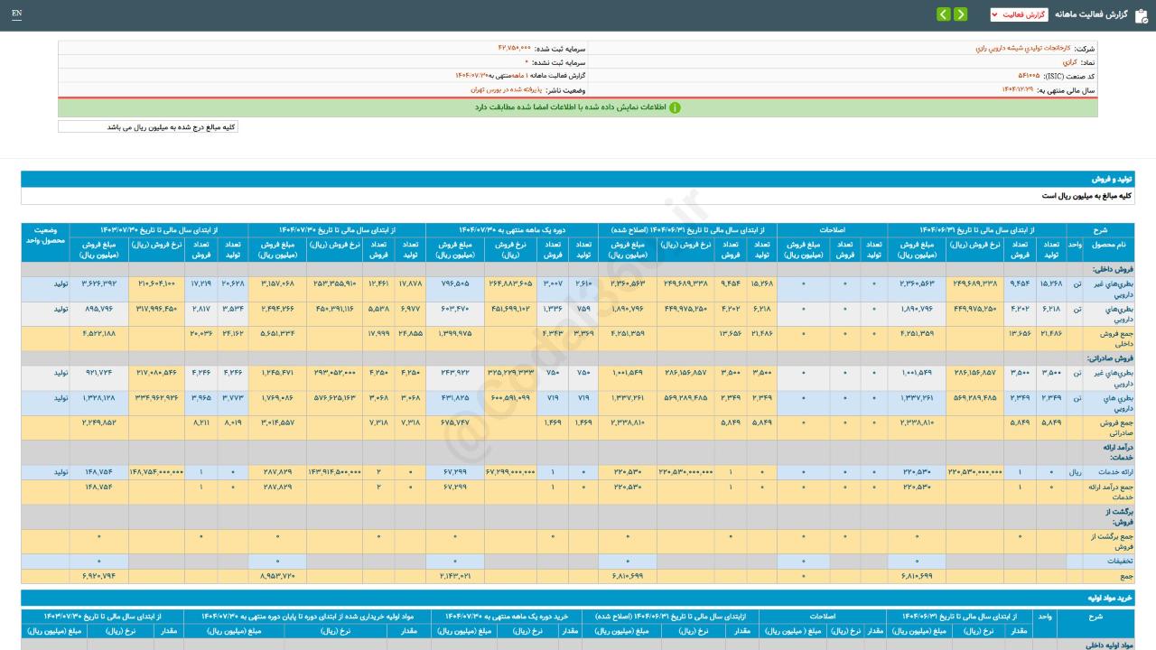 ▪️ شرکت کارخانجات تولیدی شیشه دارویی رازی طی عملکرد 1 ماهه منتهی به 14040730 مبلغ معادل 2,143,021 میلیون ریال، از محصولات خود را به فروش رسانده که نسبت به مدت مشابه سال قبل 44 درصد رشد داشته است.