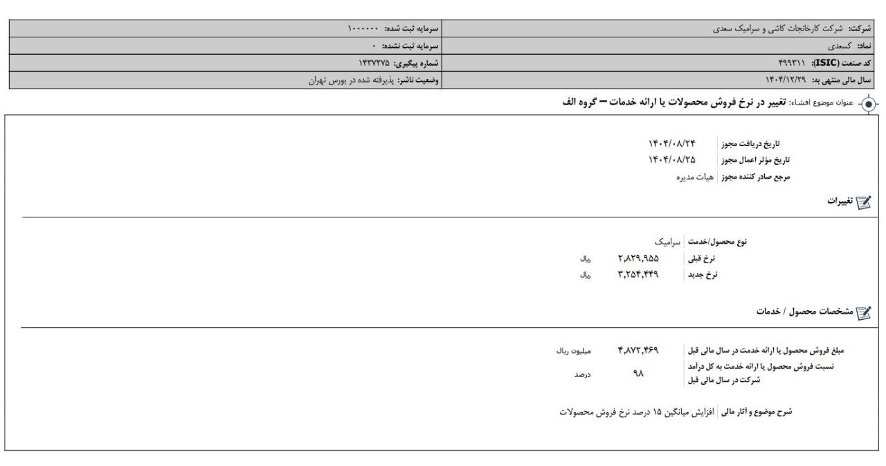افشای اطلاعات بااهمیت، تغییر در نرخ فروش محصولات یا ارائه ی خدمات-گروه الف