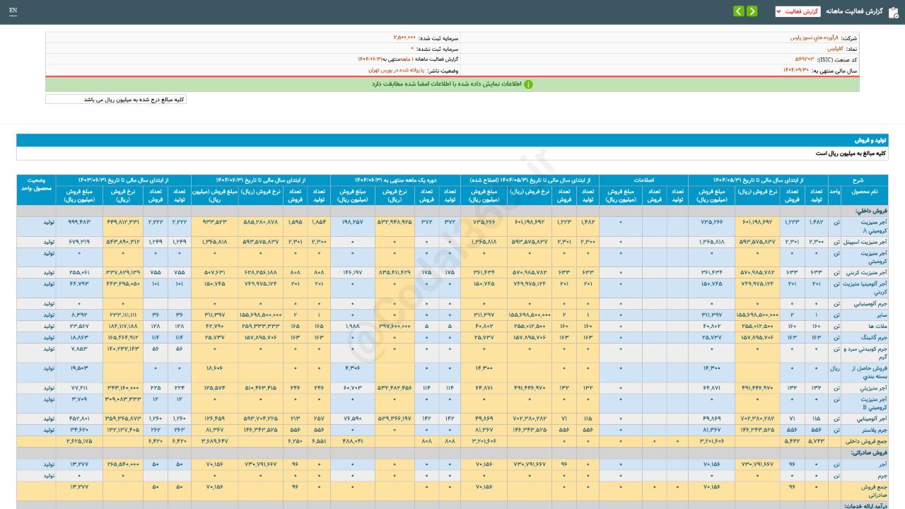 #گزارش_فعالیت_ماهانه #دوره_1_ماهه منتهی به 14040830 شرکت #فرآورده_های_نسوز_پارس