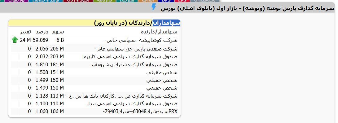 خریدار این معامله شركت كوشاپيشه بود که جدای از 20 میلیون سهم بصورت بلوکی بیش از 1.9 میلیون سهم هم در بازار عادی خریداری نمود.