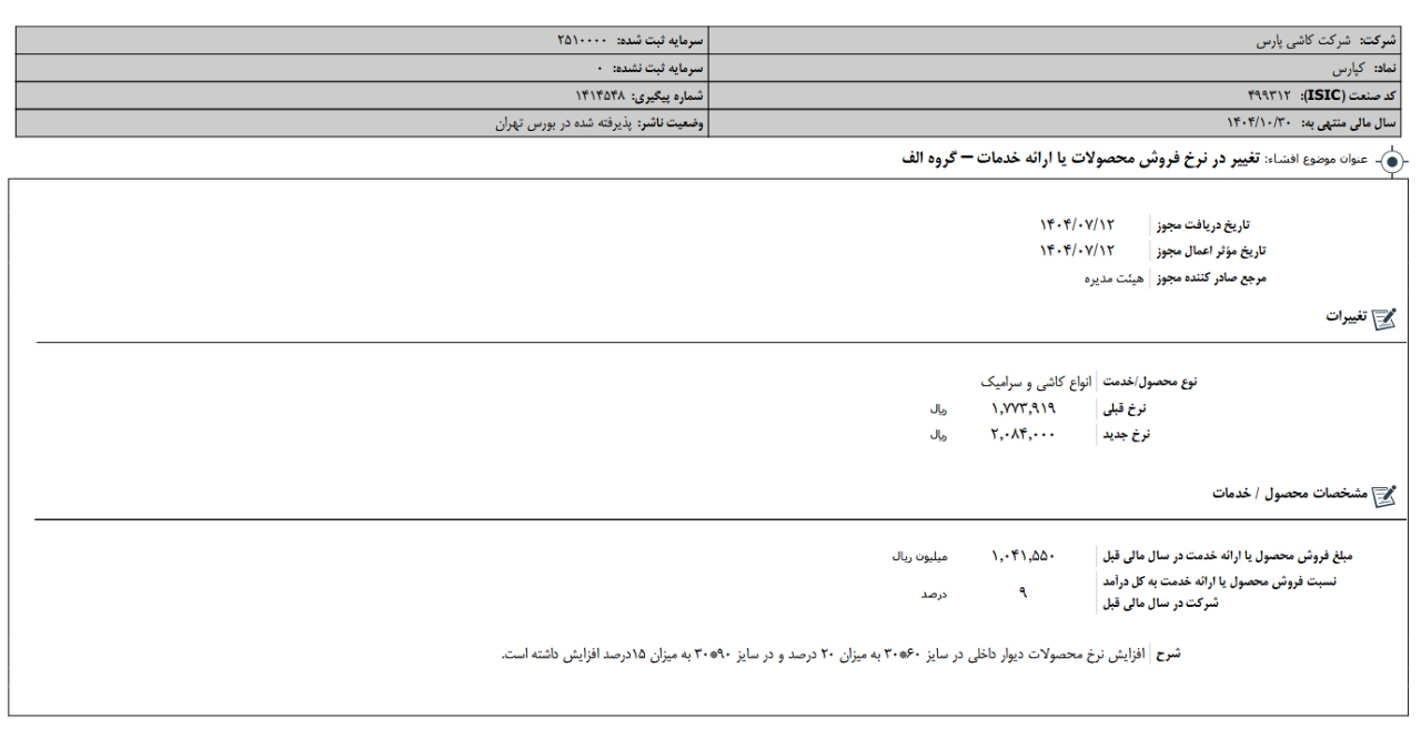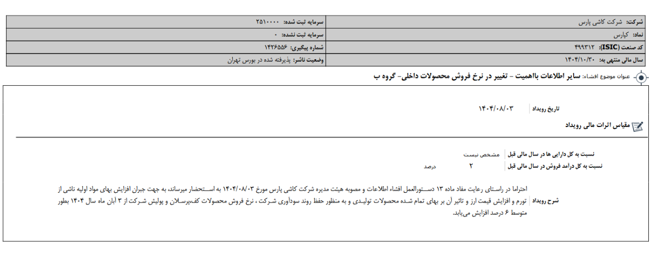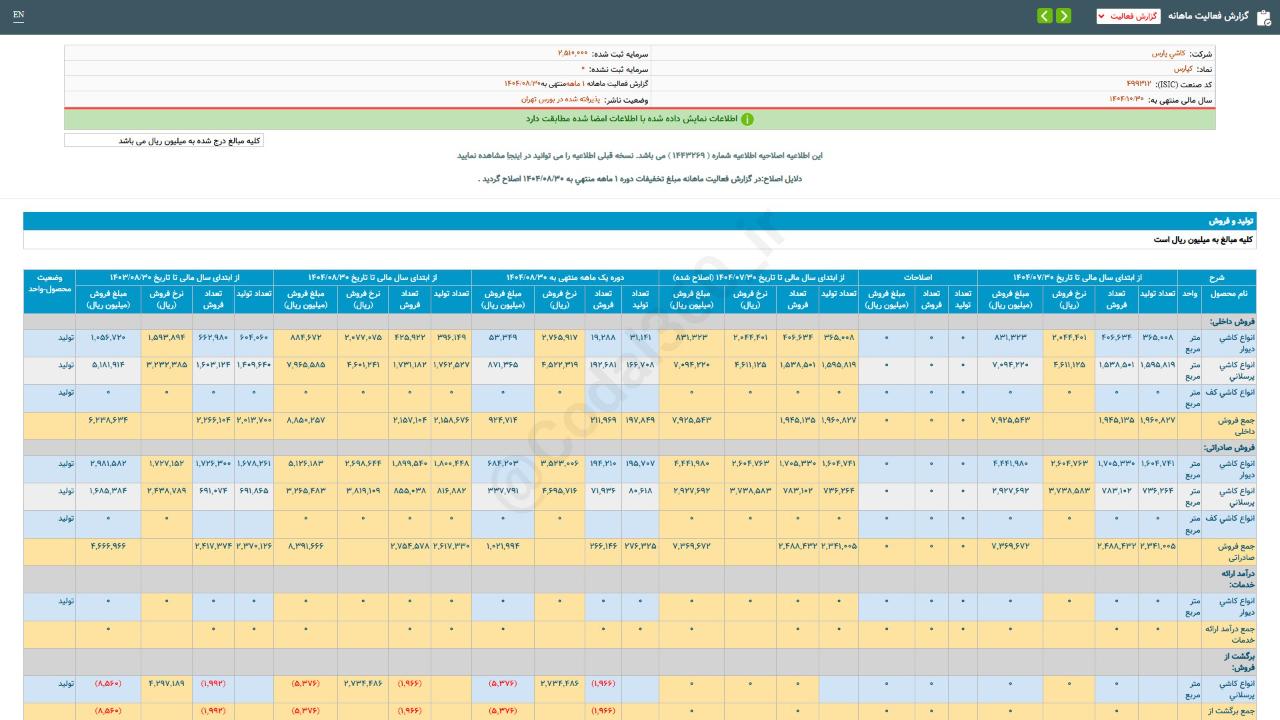 #گزارش_فعالیت_ماهانه #دوره_1_ماهه منتهی به 14040830 شرکت #کاشی_پارس