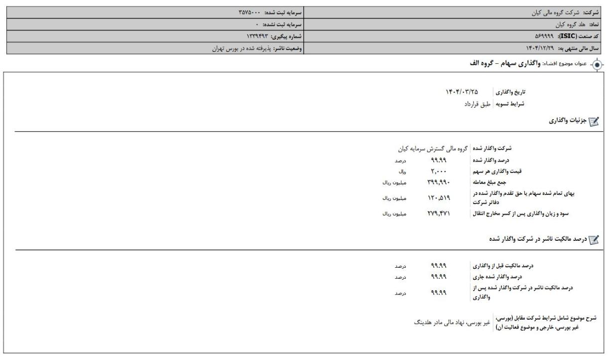 افشای اطلاعات بااهمیت،واگذاری سهام،گروه الف