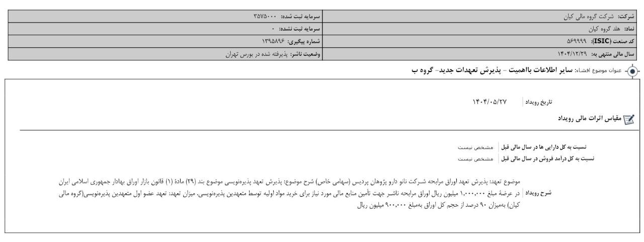 افشای اطلاعات بااهمیت، پذیرش تعهدات جدید- گروه ب