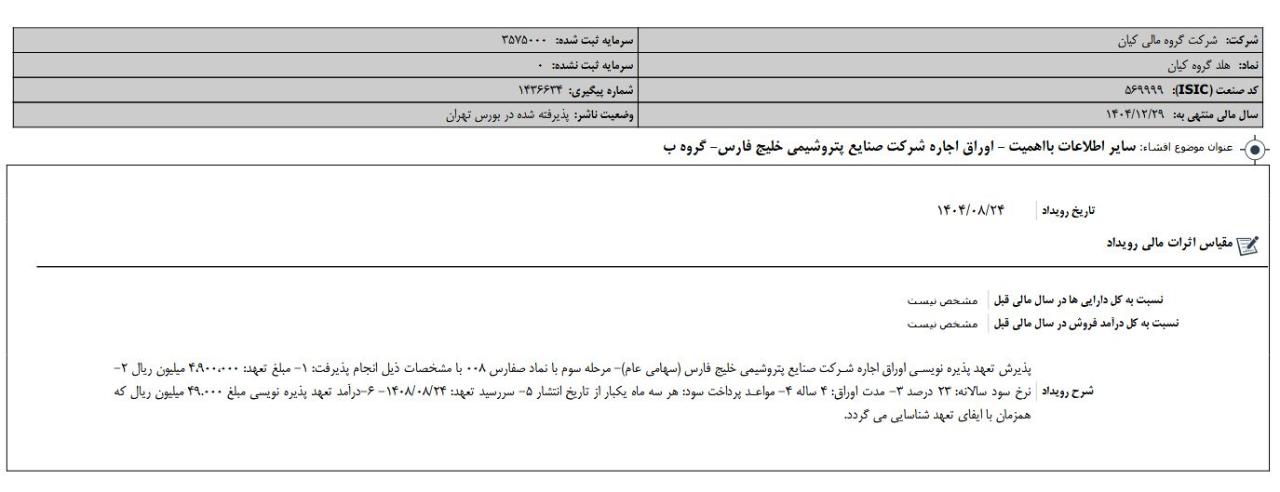 افشای اطلاعات بااهمیت، اوراق اجاره شرکت صنایع پتروشیمی خلیج فارس- گروه ب