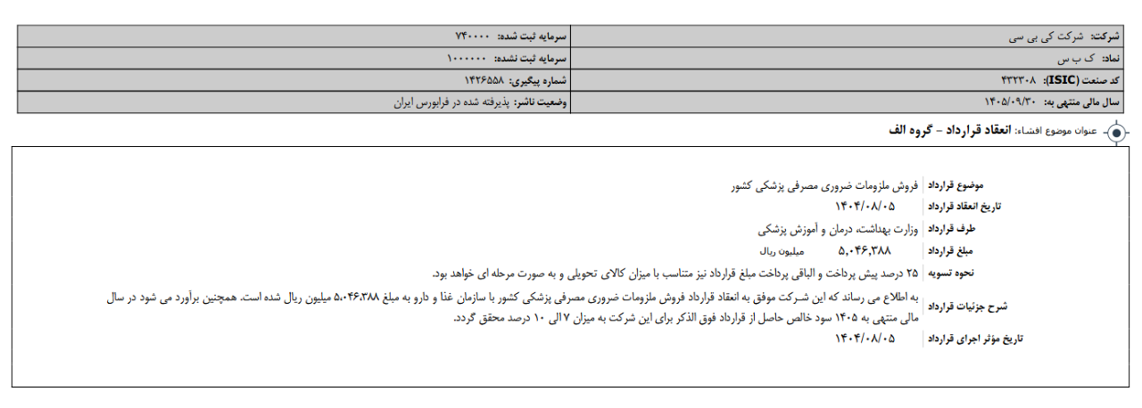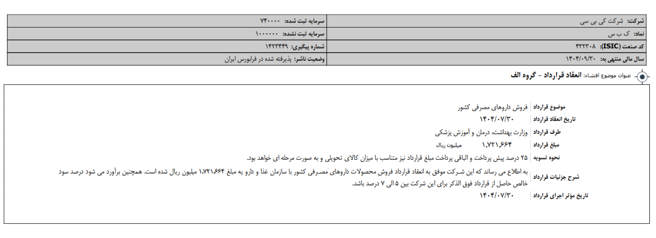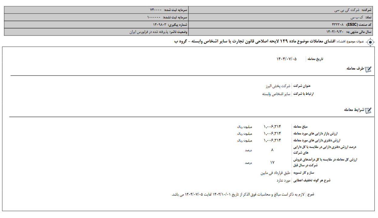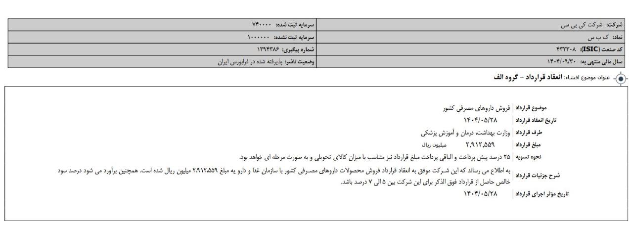 پذيرهنويسي حق تقدم استفاده نشده در نماد معاملاتي كي بي سيح1