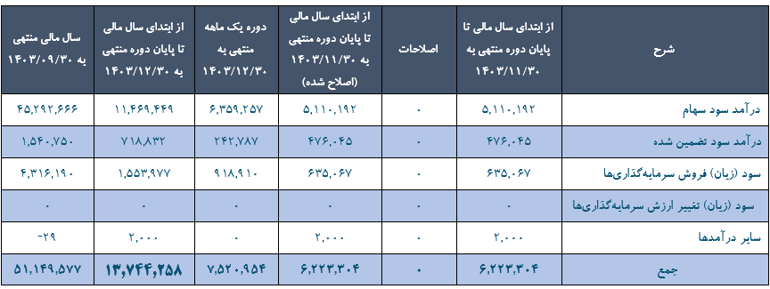 همچنین فروش خالص ششماهه نخست سال ۱۴۰۴ با ثبت رقم 21960 میلیارد ریال حدود 2196 میلیارد تومان نسبت به 10994 میلیارد ریال دوره مشابه سال گذشته، رشد ۱۰۰ درصدی را نشان میدهد.