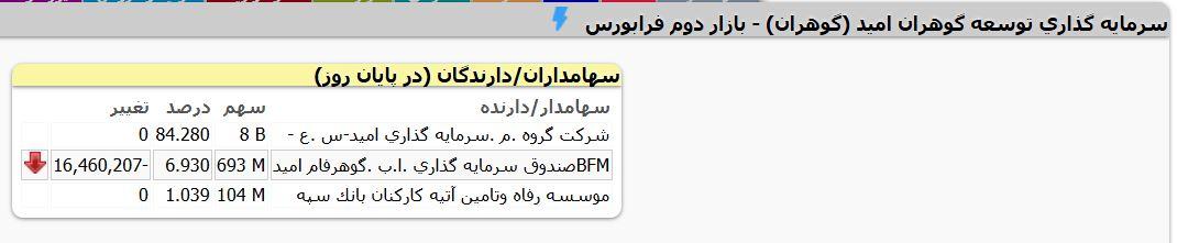 فروشنده #گوهران در معامله بلوکی روز 19 آذرماه BFMصندوق سرمايه گذاري .ا.ب .گوهرفام اميد بود که جدای از این بلوک بیش از 5 میلیون سهم را هم در بازار عادی به فروش رساند.
