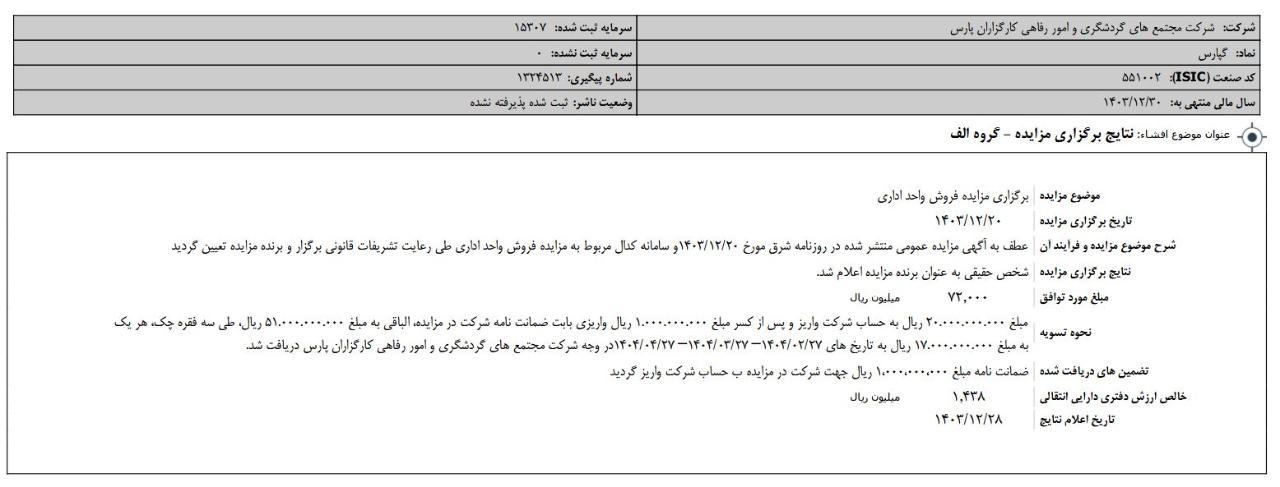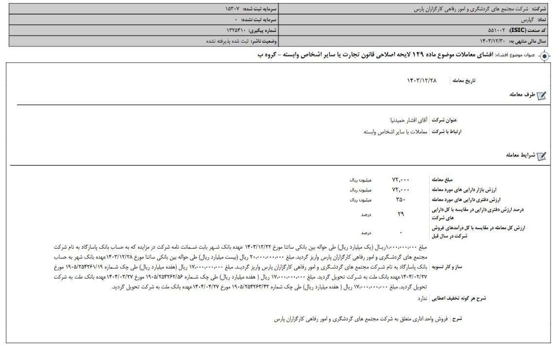اطلاعات و #صورتهای_مالی_میاندورهای تلفیقی #دوره_6_ماهه منتهی به 14040631 حسابرسی شده شرکت #مجتمع_های_گردشگری_و_امور_رفاهی_کارگزاران_پارس