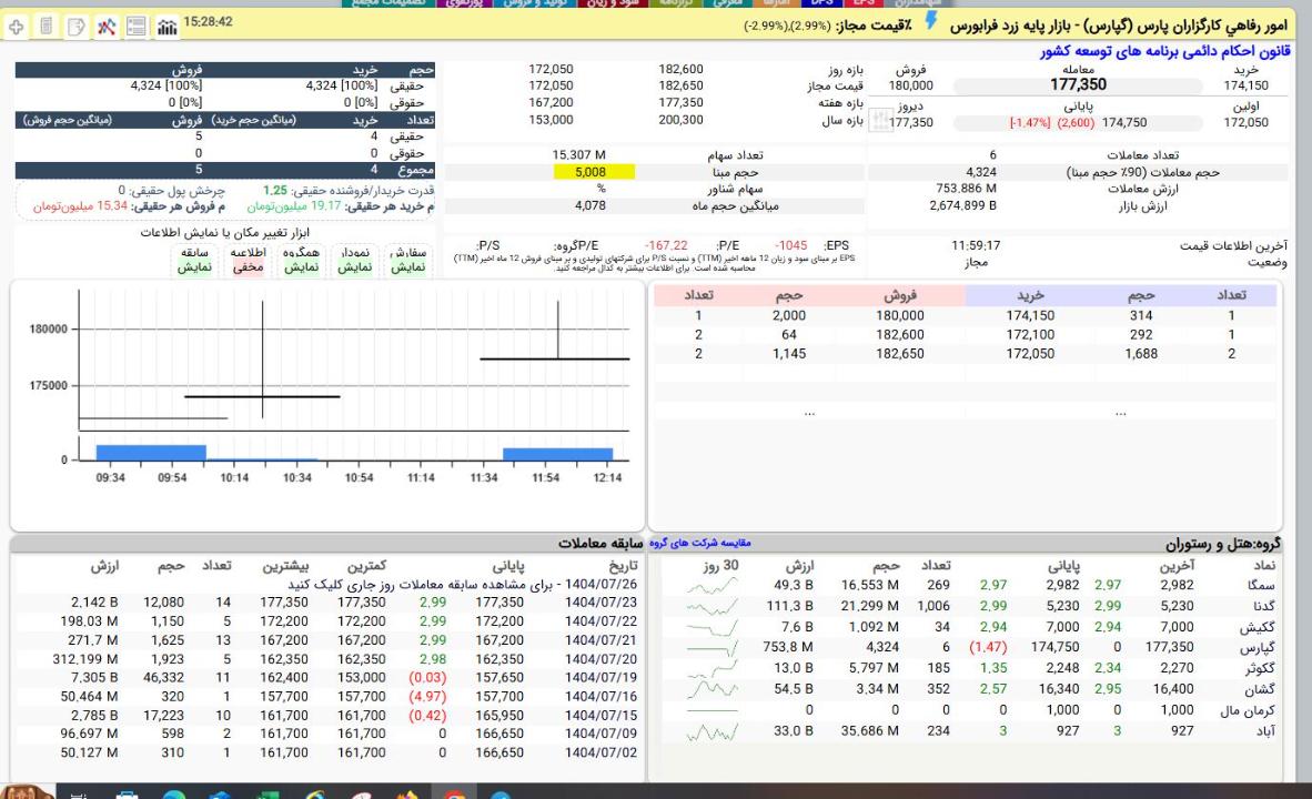 ▪️ شرکت مجتمع های گردشگری و امور رفاهی کارگزاران پارس در دوره 6 ماهه منتهی به 14040631 به ازای هر سهم 453 ریال زیان شناسایی کرده است، این درحالیست که شرکت در مدت مشابه سال قبل به ازای هر سهم 265 ریال زیان شناسایی کرده بود.