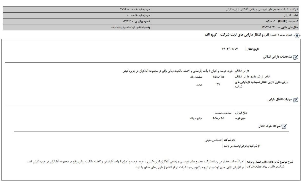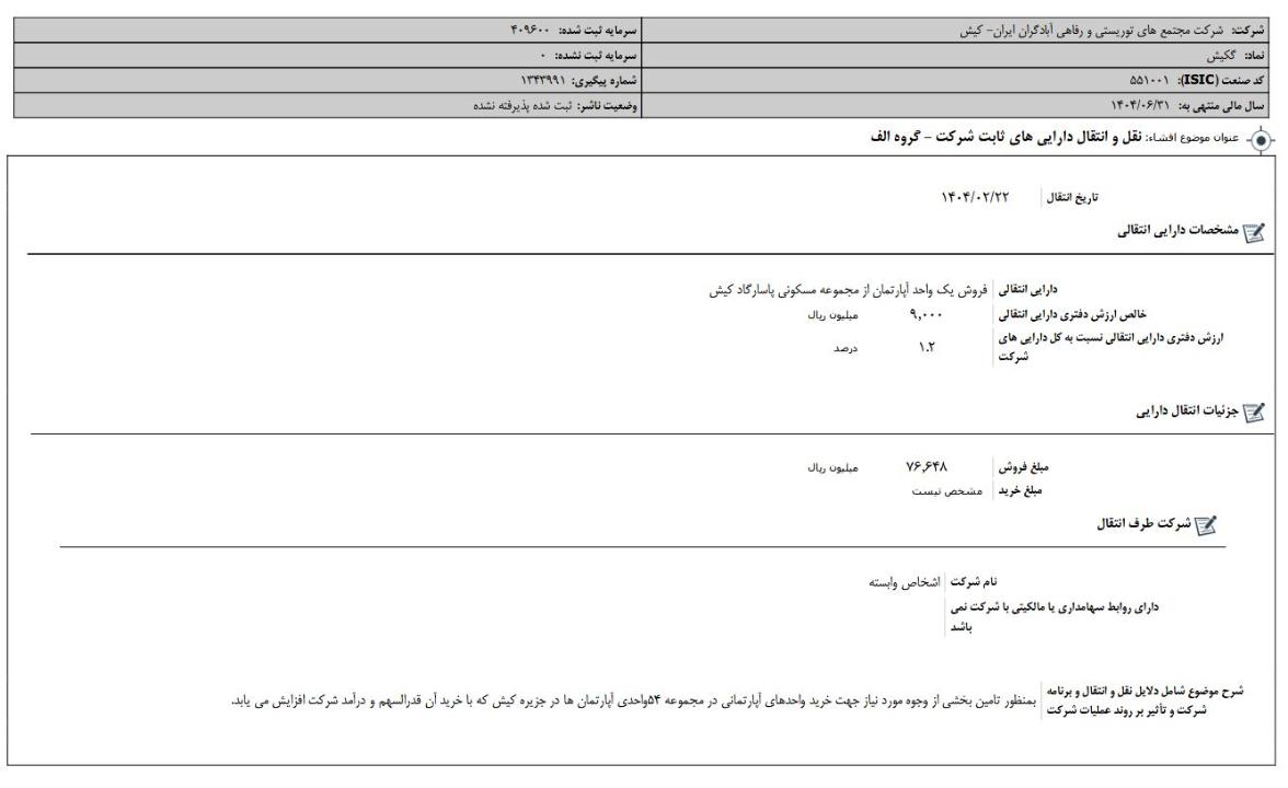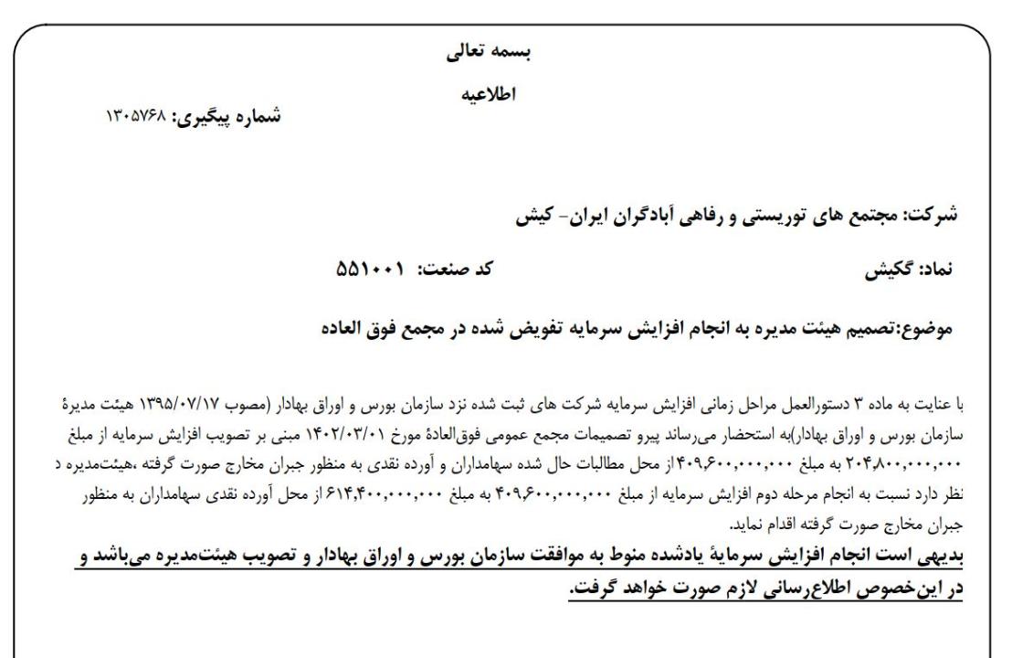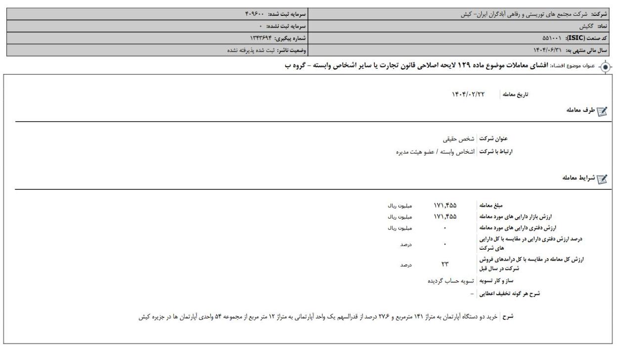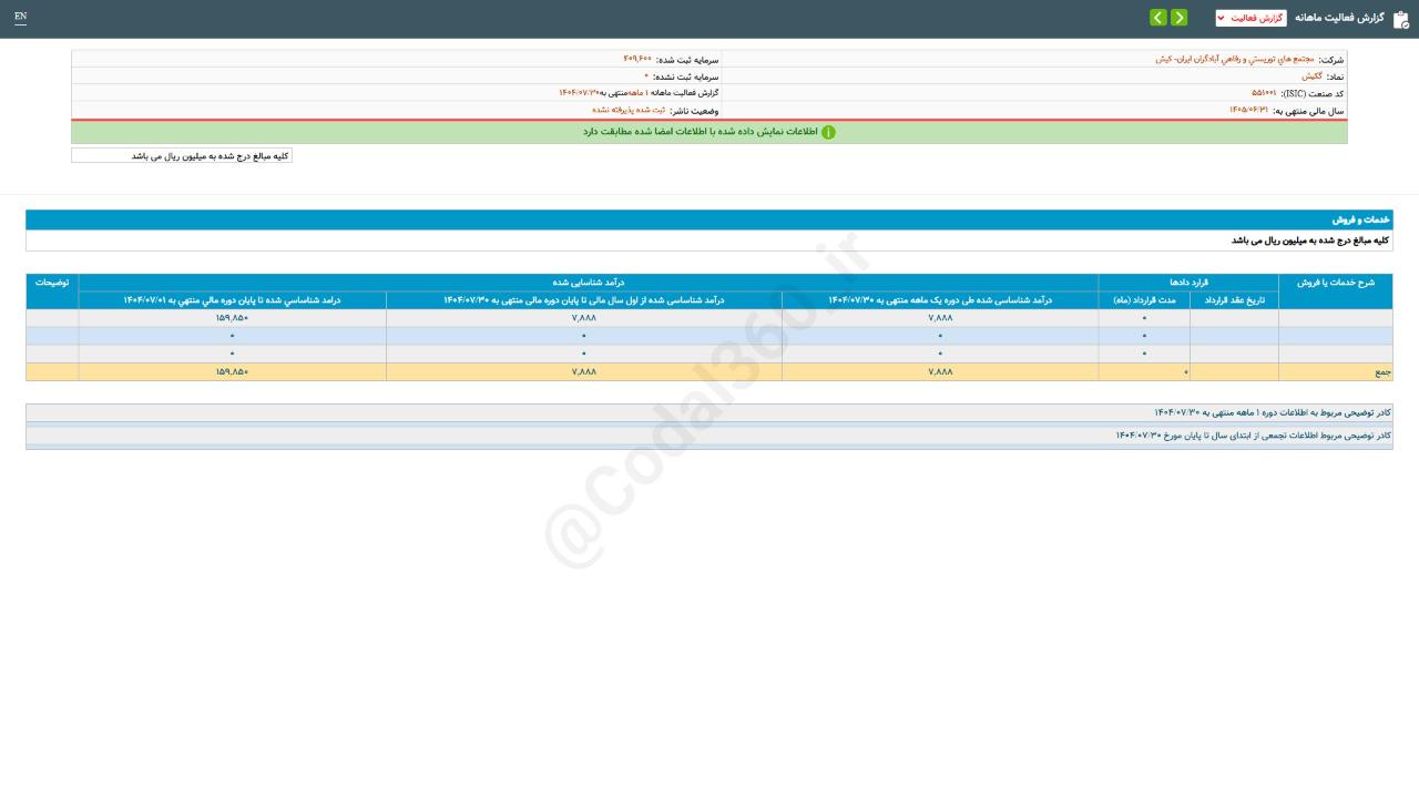 #گزارش_فعالیت_ماهانه #دوره_1_ماهه منتهی به 14040730 شرکت #مجتمع_های_توریستی_و_رفاهی_آبادگران_ایران_کیش