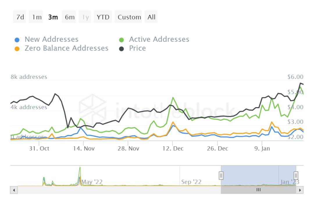 برخلاف افزایش تعداد و موجودی معاملهگران خرد APE، موجودی و تعداد آدرسهای بزرگ در حال کاهش است که نشاندهنده توزیع از سوی این دسته میباشد.