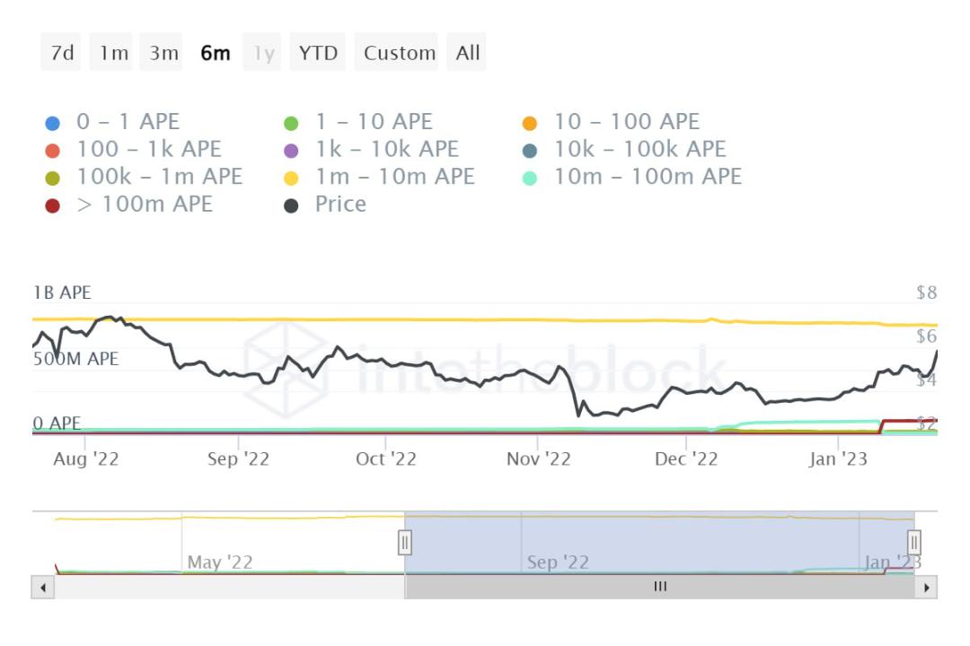 کاهش موجودی آدرسهای بزرگ #APE همزمان با قرار گرفتن قیمت در محدوده مقاومت